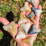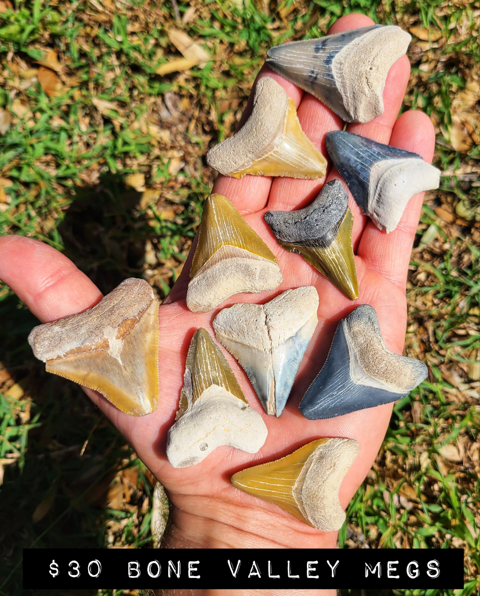 Each kit includes 40+ genuine fossilized shark teeth, featuring a guaranteed megalodon tooth (example megs in the photo gallery) and collector favorites like sand tigers, tigers, and hemis. You’ll also uncover stingray teeth and barbs, burrfish mouth plates, and turtle shell fragments, all buried in authentic Florida shell hash (real small and broken sea shells).