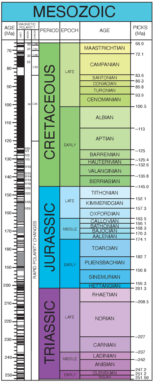 Mesozoic Era: 252 - 66 mya (~4% of Earth’s history)